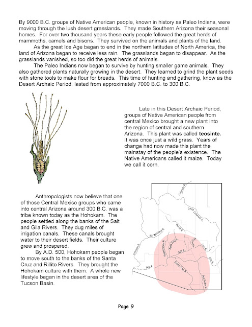 So, we have decided to share our Tucson book here on our blog. Some of the introduction pages were not completed and will be left out; 81 pages were completely/ mostly finished with text, graphs, pictures and drawings. Our drawings were made by a young Joel Contreras who has grown to become a very successful real estate man in the Valley of the Sun. We will post 10 pages at a time so the entire book will require 8 posting . As with all the materials found on our blog, we place this book into public domain and especially encourage teachers interested in Arizona’s amazing history to use the information for the kids in their classrooms. We give teachers the right to duplicate any and all pages of this book and only ask that they acknowledge our credit as: